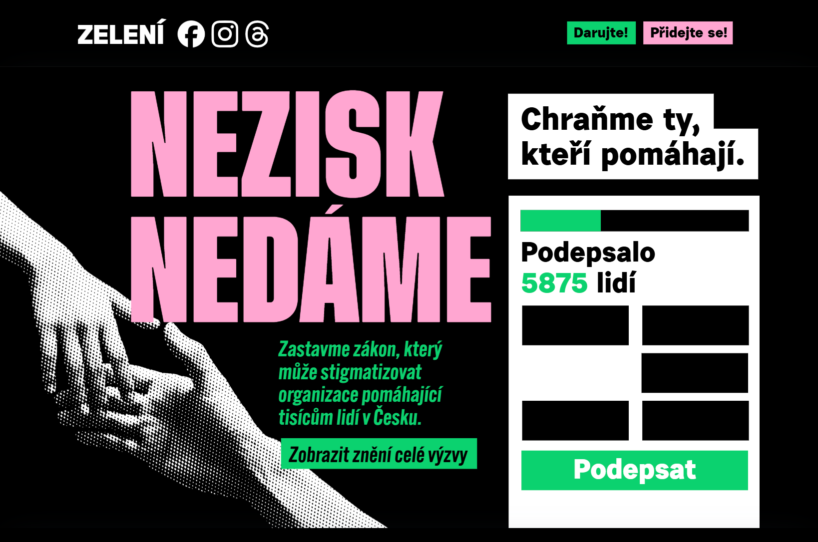 Zastavme zákon či vyhlášky, které můžou stigmatizovat organizace pomáhající tisícům lidí v Česku.